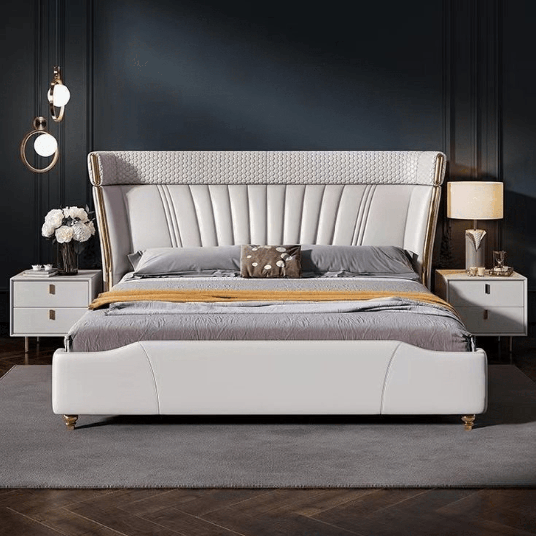 Upholstered Beds are covered in light padding and fabric which gives a textural appeal; they could be made with velvet, leatherette, suede or simple fabric upholstery and typically have tufted or straight streamlined headboards.