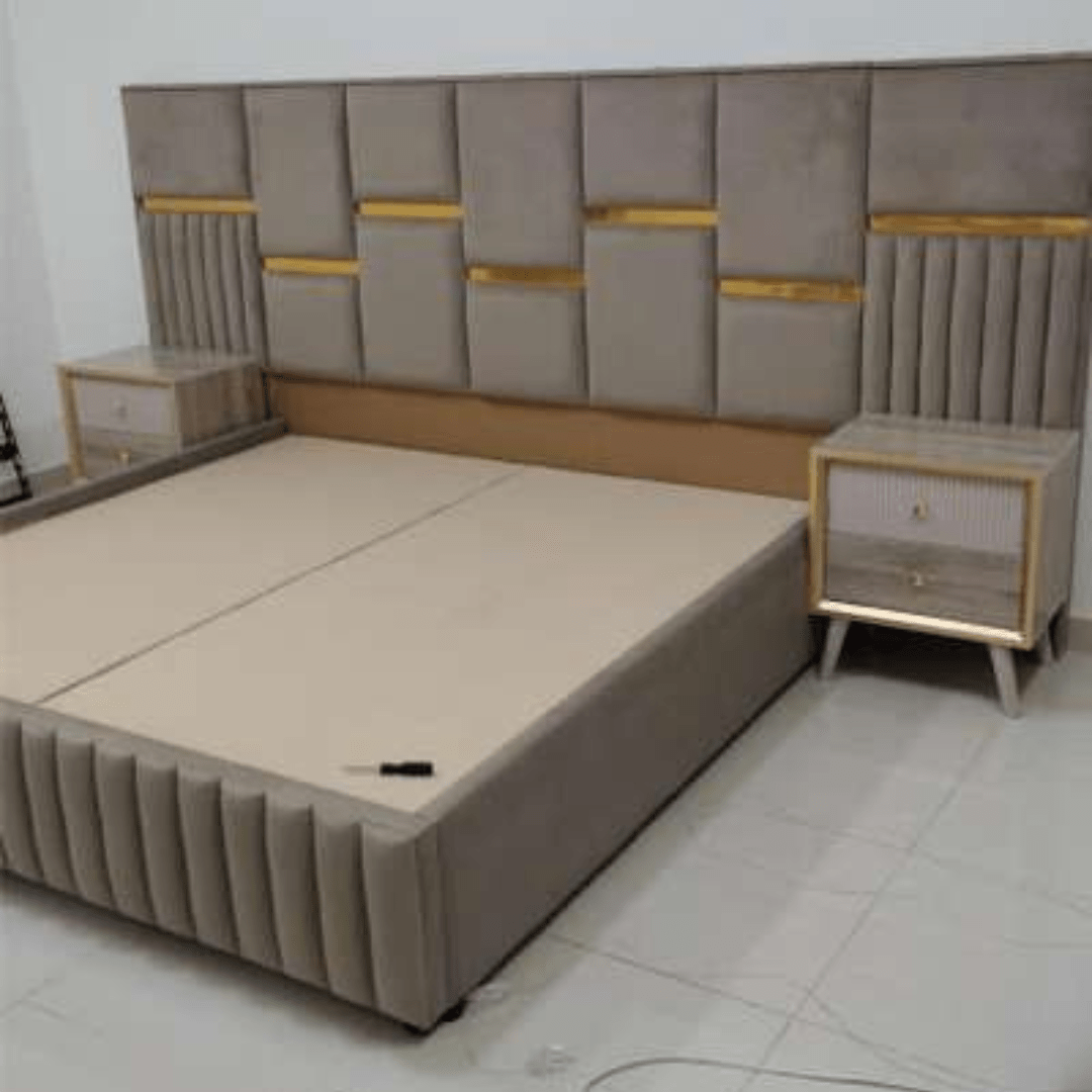 Upholstered Beds are covered in light padding and fabric which gives a textural appeal; they could be made with velvet, leatherette, suede or simple fabric upholstery and typically have tufted or straight streamlined headboards.