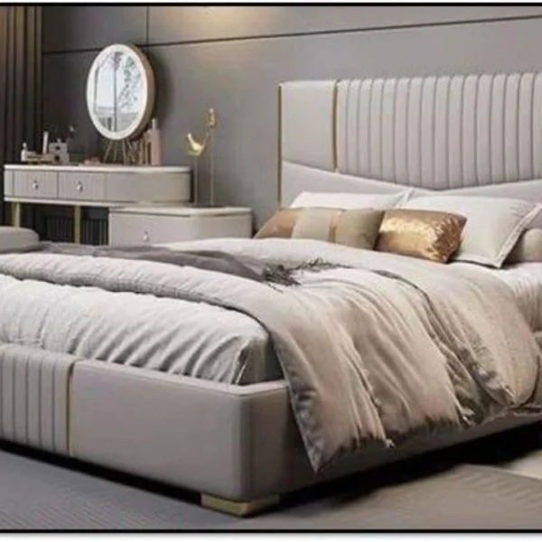 Upholstered Beds are covered in light padding and fabric which gives a textural appeal; they could be made with velvet, leatherette, suede or simple fabric upholstery and typically have tufted or straight streamlined headboards.