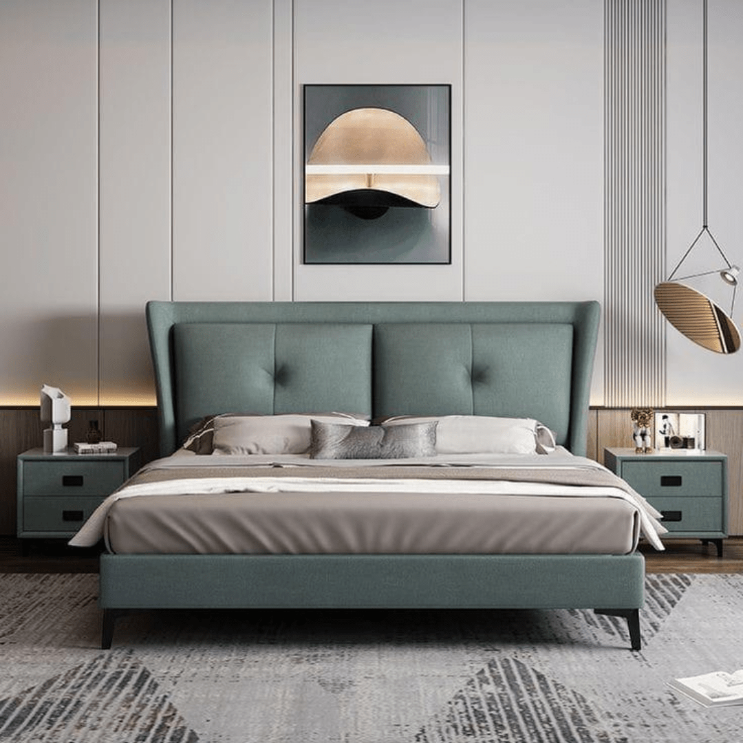 Upholstered Beds are covered in light padding and fabric which gives a textural appeal; they could be made with velvet, leatherette, suede or simple fabric upholstery and typically have tufted or straight streamlined headboards.