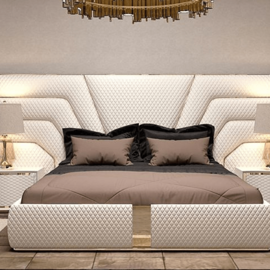 Upholstered Beds are covered in light padding and fabric which gives a textural appeal; they could be made with velvet, leatherette, suede or simple fabric upholstery and typically have tufted or straight streamlined headboards.