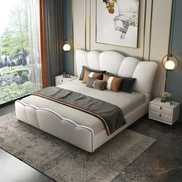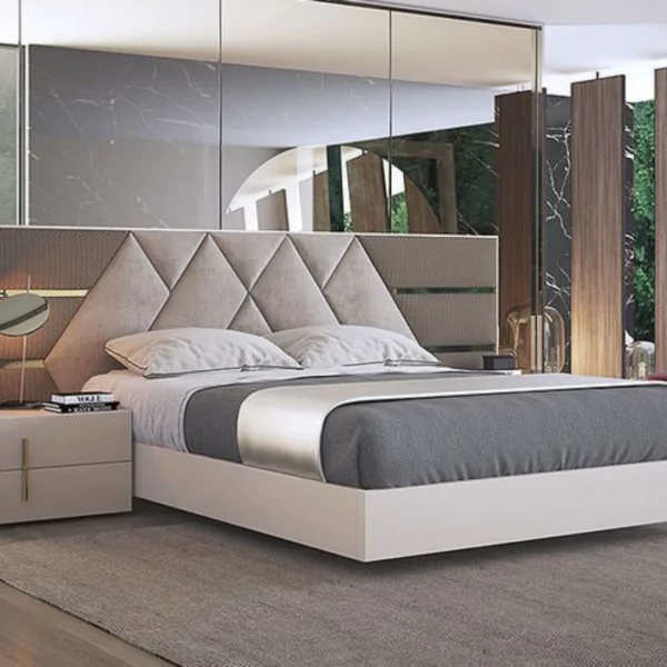 Upholstered Beds are covered in light padding and fabric which gives a textural appeal; they could be made with velvet, leatherette, suede or simple fabric upholstery and typically have tufted or straight streamlined headboards.