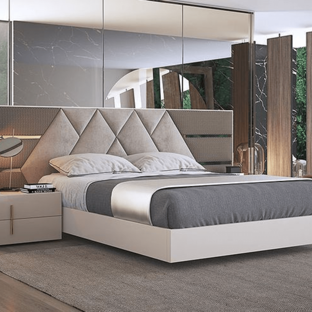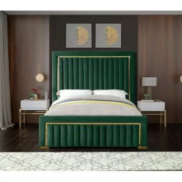 Upholstered Beds are covered in light padding and fabric which gives a textural appeal; they could be made with velvet, leatherette, suede or simple fabric upholstery and typically have tufted or straight streamlined headboards.