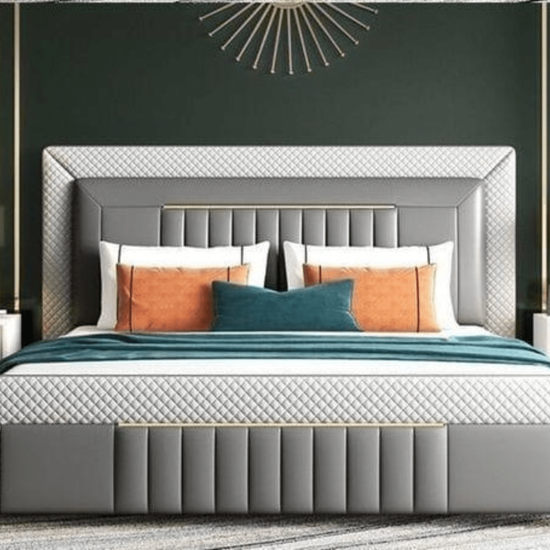 Upholstered Beds are covered in light padding and fabric which gives a textural appeal; they could be made with velvet, leatherette, suede or simple fabric upholstery and typically have tufted or straight streamlined headboards.