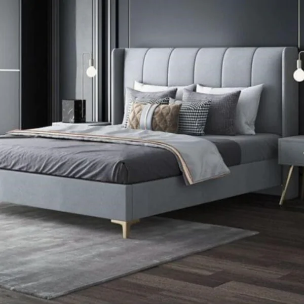 Upholstered Beds are covered in light padding and fabric which gives a textural appeal; they could be made with velvet, leatherette, suede or simple fabric upholstery and typically have tufted or straight streamlined headboards.